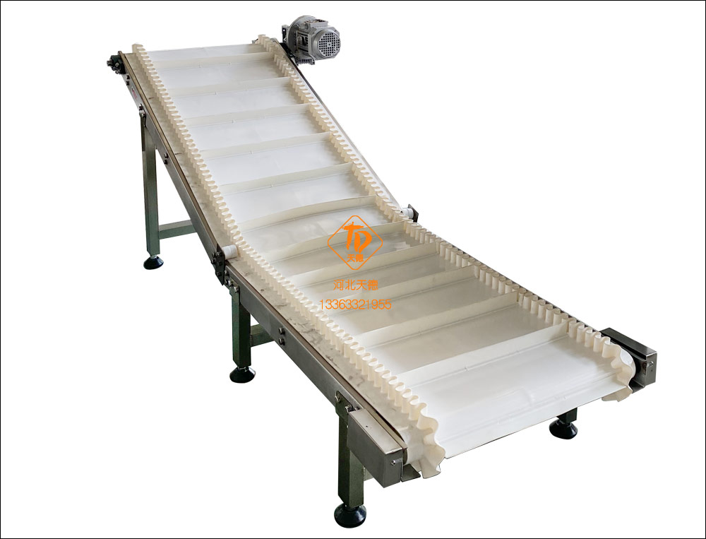 波形擋邊大傾角皮帶式輸送機:為一般用途的散狀物料連續(xù)輸送設備,具有波狀擋邊和橫隔板的輸送帶。適用于大傾角輸送;