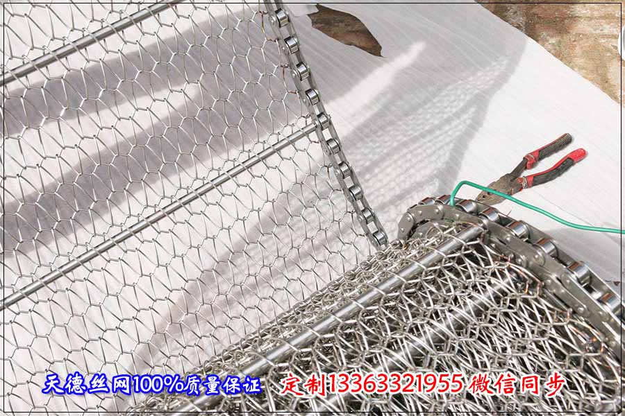 我們在經過了7天的努力,成功的將輸送塑料件的鏈條不銹鋼網帶加工完畢,現在已經裝車在發往物流的路上了,預計3天后會到達客戶的手里,還望山東的催總保持手機開機準備接貨。 塑料件鏈條式不銹鋼輸送帶的詳細規格如下: 鏈條不銹鋼輸送帶的鏈條中心距為1.5米,總長度在32米,材質采用不銹鋼304材質,能夠防止在水中長時間浸泡導致的生銹問題,鏈條式不銹鋼輸送帶的絲徑根據每米輸送帶載重在10斤左右定為1.2毫米,塑料件小的面積為10公分,因此輸送網鏈編織的孔為15*20毫米,鏈條節距為63.5毫米,不銹鋼桿直徑為15毫米,鋼桿與鋼桿之間的距離為20公分。鏈條驅動的輸送網鏈運輸平穩,在運轉的過程中一會跑偏。