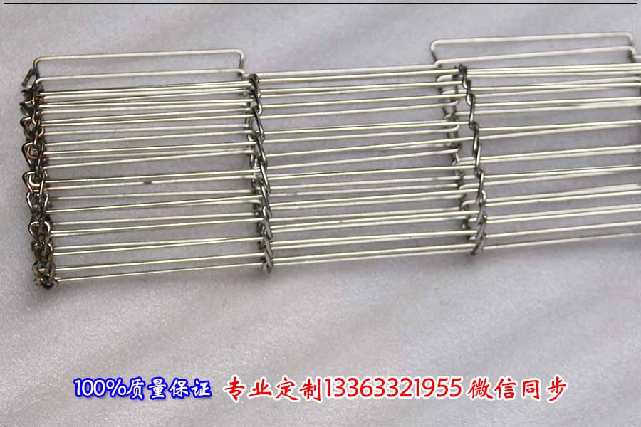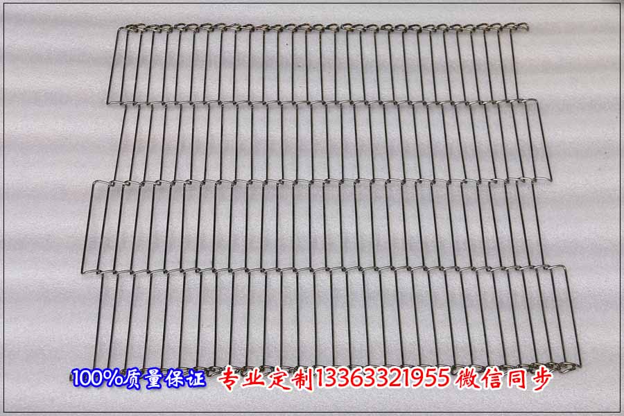 現在給大家介紹一款我公司以前加工生產的乙字型輸送網鏈的參數規格: 不銹鋼輸送帶總的寬度包括小邊的寬度為600毫米。 編織成型的網孔大小為:在總的寬度上平均分為8格,網孔節距為8毫米,網絲直徑為1.2毫米。 乙字型不銹鋼網帶的轉彎角度為120°。 乙字型輸送帶的材質為不銹鋼304材質。 采用木箱包裝,在運輸過程中能夠防止變形。 乙字行輸送網鏈可以根據需要來安裝鏈條,采用這種輸送帶的時候考慮多的還是該網帶自重輕,在運輸的過程中能夠減少運費,另一方面是該網帶使用后清洗方便,不用雙面清洗,清洗一側就好。