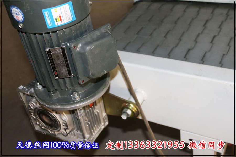 詳細的規(guī)格如下: 鏈板式不銹鋼輸送帶的詳細規(guī)格: 寬度:不含兩側鏈條和擋板的寬度為807毫米,鏈板輸送機的總寬度為820毫米左右。 輸送鏈板總長度為12米,鏈板輸送機的總高度為6米。因為輸送鏈板要轉一周所以總長是輸送機的一倍。 鏈板輸送機的材質與輸送鏈板規(guī)格:整機采用不銹鋼304材質,配帶電機、變頻器、減速機;鏈條采用38.1毫米的節(jié)距,傳送板采用1.5毫米的厚度,不銹鋼穿桿直徑采用6毫米圓桿支撐,兩側擋板厚度為1.5毫米,高度為5公分。輸送鏈板上的刮板厚度為1.5毫米,高度為5公分,刮板間距為40公分。 天德輸送網(wǎng)鏈廠多年來加工各種規(guī)格的輸送機、網(wǎng)鏈。