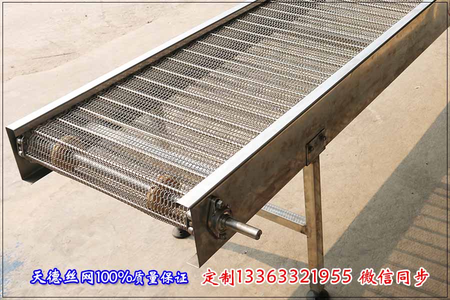 河北吳總來電咨詢網帶輸送機,在經過我們的介紹后訂購了一臺鏈條網帶輸送機,吳總訂購的這臺網帶輸送機用來輸送鋼絲和融化的膠皮,因為處于高溫狀態(tài)下使用,整臺設備采用不銹鋼304材質。 下面是鏈條網帶輸送機的具體數(shù)據(jù): 鏈條網帶輸送機的總寬度為800毫米,總高度為500毫米,不銹鋼輸送帶的網寬為750毫米左右, 邊緣擋板的高度為20毫米,防止膠皮和鋼絲側漏。