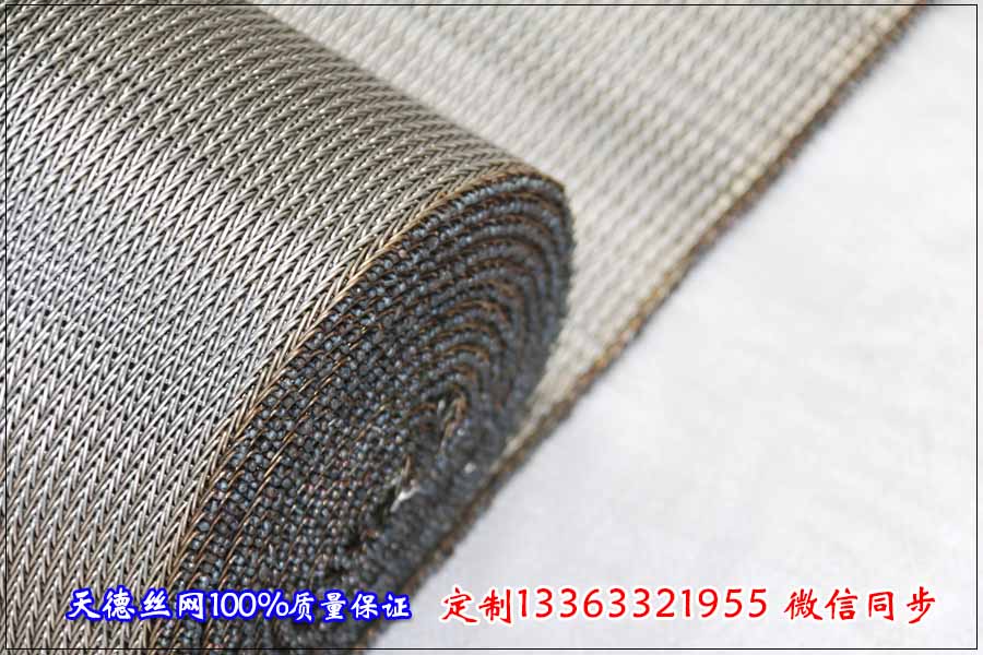 不銹鋼輸送帶通常采用的材料為鋼絲在進廠后需要進行處置,鋼絲輸送網鏈,上機、不銹鋼輸送帶繞絲加工而成型。對成型的不銹鋼輸送帶絲根據不銹鋼輸送帶示明圖施行截斷處理,如果是板式不銹鋼網帶形式的輸送帶,要保障每段輸送鏈板的使用寬度。 網狀不銹鋼輸送帶繞絲成型截取一段在這以后,依據相關要求對輸送帶進行編織串絲 鏈接,把全部成型的輸送網鏈繞絲和穿絲接在一起。平衡型不銹鋼網帶采用左右螺旋的對稱編織,運行緩慢平穩,走偏較小,結構形式 上采用直串條拼接形式,工藝加工簡單。