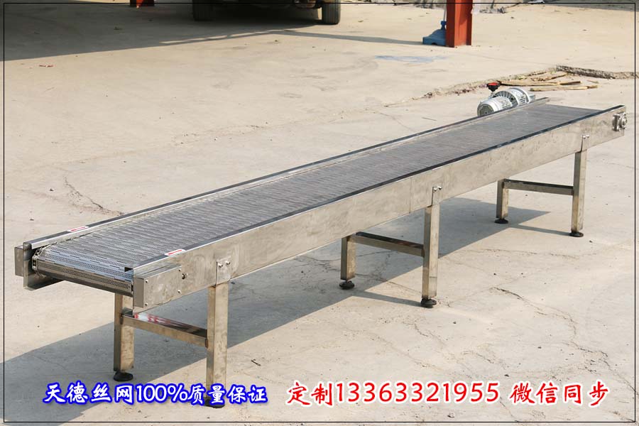 河北天德絲網制品有限公司生產河道垃圾鏈板輸送機、輸送鏈板、不銹鋼輸送機、打孔鏈板輸送帶、金屬輸送帶:13363321955 http://m.wangbaojun528.cn/