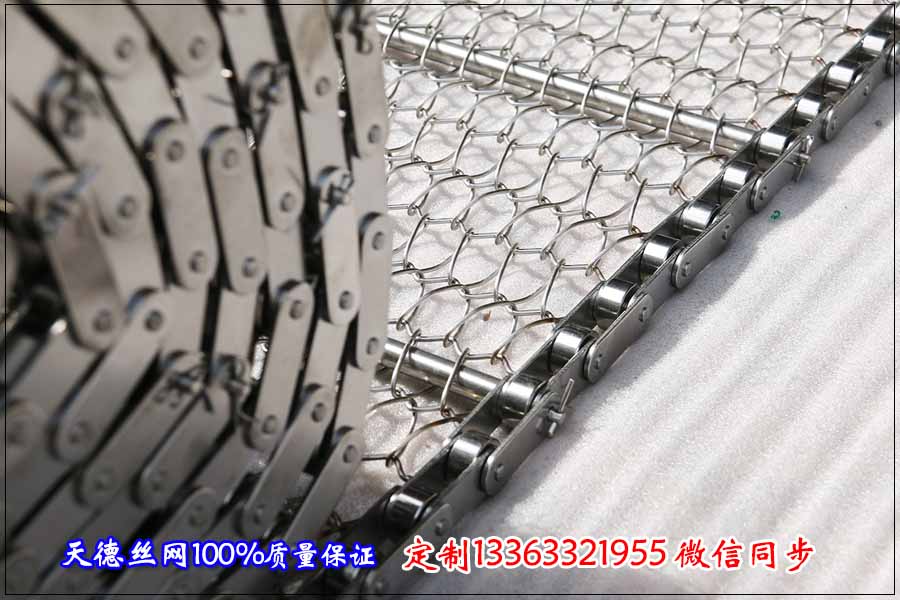 不銹鋼網帶帶芯是螺旋狀不銹鋼輸送帶整體帶芯,耐灼燒、耐高溫、耐穿刺、 耐撕裂、伸長率小、粘合強度高 、成槽性好、接頭操作時間短簡便易行。耐高溫不銹鋼網帶使用溫度為150℃—200℃;不銹鋼網帶 芯耐灼燒不銹鋼輸送帶使用溫度為200℃—800℃;不銹鋼網帶芯不銹鋼輸送帶 在不同的溫度下使用都有很好性能。 不銹鋼輸送網鏈網孔清晰、網面平挺,有抗高溫、耐磨的特性。不銹鋼網帶多 用于粉末篩選和過濾油方面。合成纖維篩網錦綸或滌綸長絲和棕絲兩種。長絲用12~30目單絲,輸送網鏈孔眼表面光滑,方便與過濾。不 銹鋼網帶有不銹鋼輸送網鏈,不銹鋼輸送網帶,不銹鋼網,不銹鋼帶,不銹鋼防盜網等。不銹鋼輸送帶具有耐高溫1200℃,耐酸堿耐磨,耐腐蝕抗拉強度高特點,使用壽命長特點。