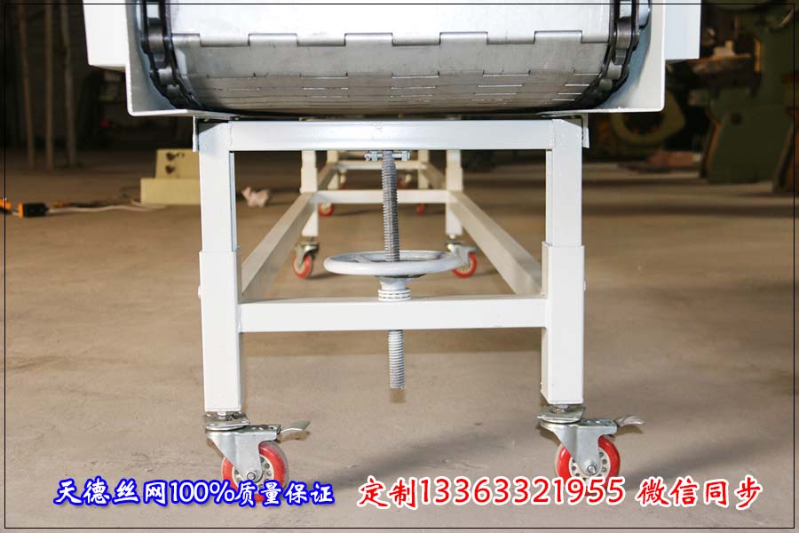 金屬鏈板輸送機 是流水線輸送設備中的一種依靠輸送鏈板與物料之間的靜摩擦力取得來自電機端的動力,從而實現連續式輸送的一 種流水線輸送設備機械。 大家都知道輸送鏈板作為傳動部件要做到及時潤滑才能夠延長使用壽命從而提高不銹鋼輸送機輸送設備的生產效率。 鏈板輸送機在使用中常見的故障大多是在輸送機的輸送鏈板上,鏈板是輸送機承載物 料的主要零件,輸送機在運行過程中很容易發生磨損的現象。為了確保鏈板輸送機的運行大家一定要了解會導致輸送機輸送鏈板故障因素有哪些相關的鏈板防護工作也要提上日程。