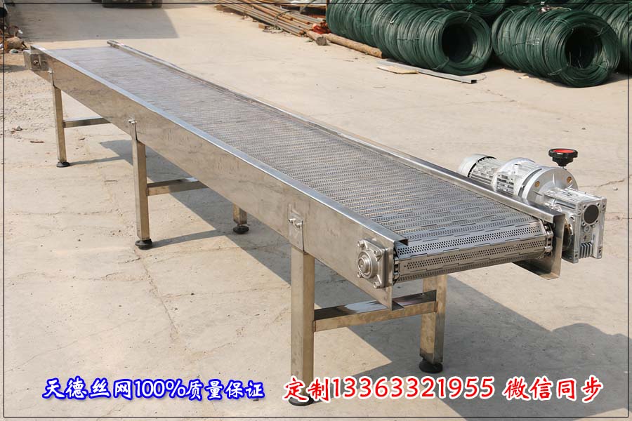 河北天德絲網制品有限公司生產不銹鋼輸送機、金屬網帶、不銹鋼網帶、輸送網鏈、解凍鋼絲網輸送帶:13363321955