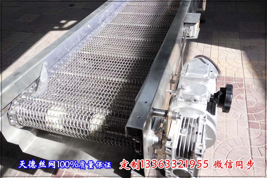 人字型不銹鋼網(wǎng)帶可以靠滾筒帶動(dòng),也可以靠鏈輪帶動(dòng)。 石家莊的一位客戶在我們這訂購(gòu)的人字網(wǎng)帶輸送機(jī),不要底腿,只是要上面的一個(gè)平面網(wǎng)帶輸送機(jī),客戶定的是帶鏈條的人字網(wǎng)帶輸送機(jī),這樣比較省事一點(diǎn),因?yàn)榭挎溳啂?dòng),這種人字型不銹鋼網(wǎng)帶不僅是折邊的而且還加擋板,輸送的產(chǎn)品載重不是很重,但是比較體積小,所以客戶選擇用人字型輸送網(wǎng)帶,這種不僅密度比較小,除了網(wǎng)子比較密一些,像加隔板還有加擋板都是可以做的,人字型輸送網(wǎng)帶主要的就是成本要比金屬輸送帶高一些,但是使用方面是沒(méi)有問(wèn)題的,就算客戶輸送比較重一點(diǎn)的東西也是可以的,所以載重方面完全不用擔(dān)心。