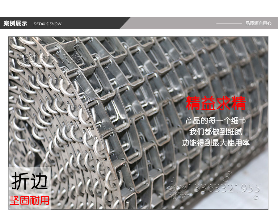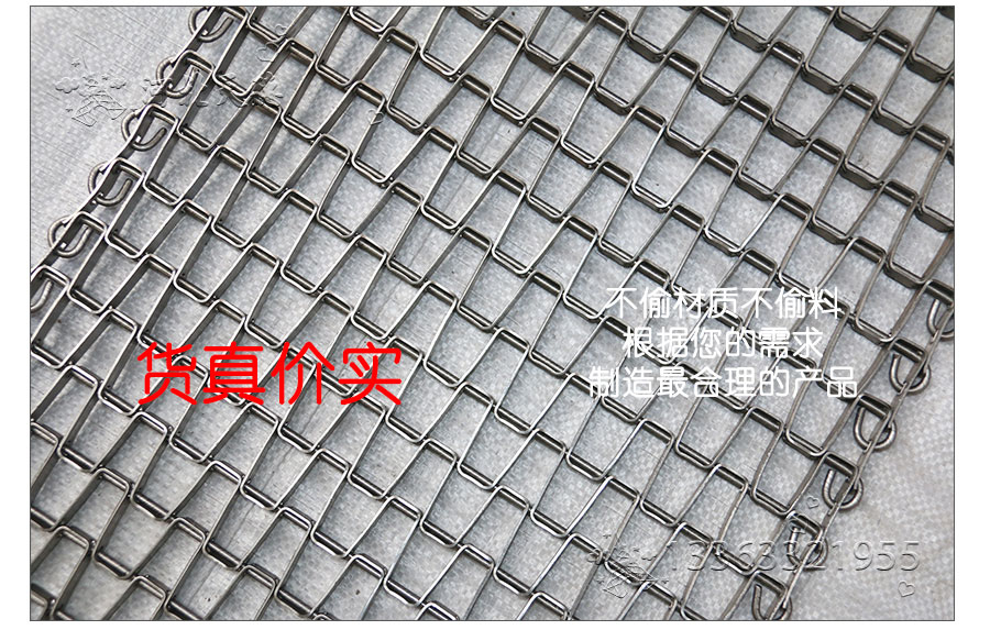 長城網(wǎng)帶材質(zhì):有A3低碳鋼、45#鋼、1Cr13耐熱鋼、 不銹鋼、304不銹鋼、1Cr18Ni9Ti不銹鋼、0Cr18Ni14NO2CU2耐熱耐酸鋼等